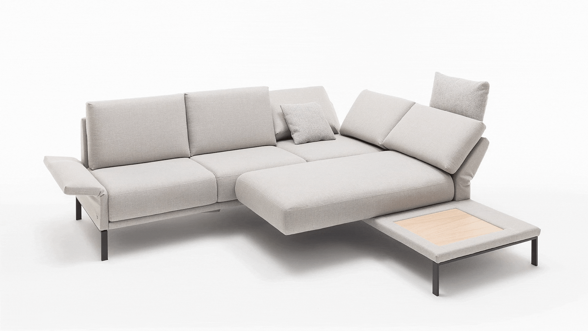 Mit seinem abklappbaren Seitenteil, dem schwenkbaren Sitz und dem stufenlos verstellbaren Rücken erfüllt das Sofa «Plura» all Ihre Komfortwünsche. Egal ob Sitzen, Loungen, Relaxen oder Schlafen – diese Polstergruppe passt sich all Ihren Bedürfnissen im Handumdrehen an. Für eine extra hohe Rückenlehne klappen Sie den Rücken einfach nach oben. Und noch ein Tipp: Mit abgeklapptem Seitenteil und geschwenktem Sitz wird «Plura» zum gemütlichen Longchair.