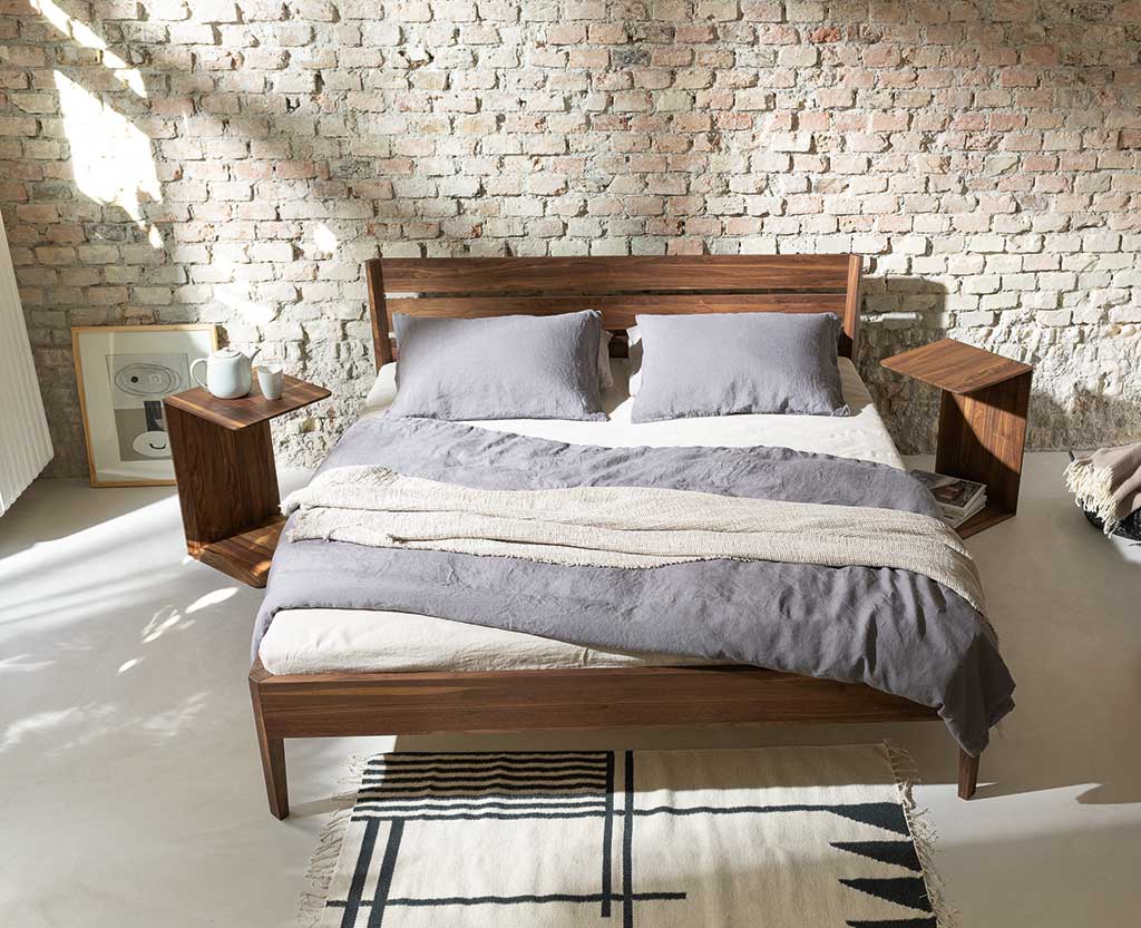 Massivholzbetten der Marke «Team 7» kombinieren ästhetische Eleganz mit umweltfreundlicher Produktion. Sie werden aus nachhaltig gewonnenem Holz hergestellt und ohne Metall produziert; die Steckverbindungen werden nach alter Tradition aus Holz gefertigt, was ihnen einen einzigartigen Look verleiht. Die Betten sind besonders stabil und langlebig. Ausserdem verzichtet «Team 7» gänzlich auf Chemikalien: Die Holzoberflächen der Betten werden ausschliesslich mit reinem Naturöl veredelt, damit sie optimal für ein gesundes Raumklima sorgen können.
