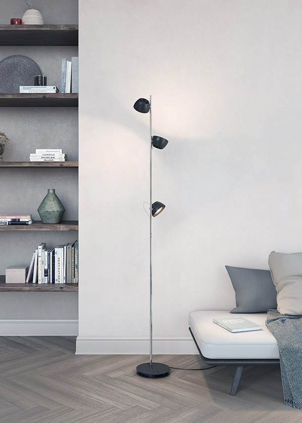 Minimalistisches Design trifft auf Vielseitigkeit: Die Stehleuchte «FEZ S» bietet ein ausziehbares Teleskopgestänge, einen neigbaren Leuchtenkopf und zwei LEDs, die direktes oder gestreutes Licht ermöglichen. Ideal für unterschiedliche Lichtstimmungen in Wohn- und Arbeitsräumen.